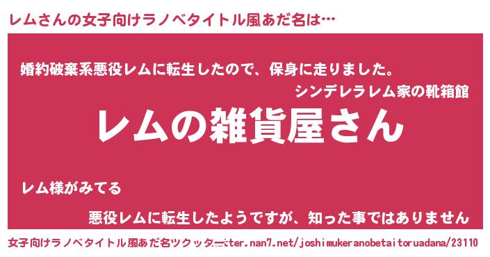 | 意味不明あだ名 | 『レムフォーエバー』『なめこ科レム属』 |