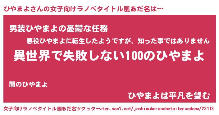 | 男性向けラノベタイトル風あだ名 | 『ひやまよという概念が存在しない退屈な世界 』 |