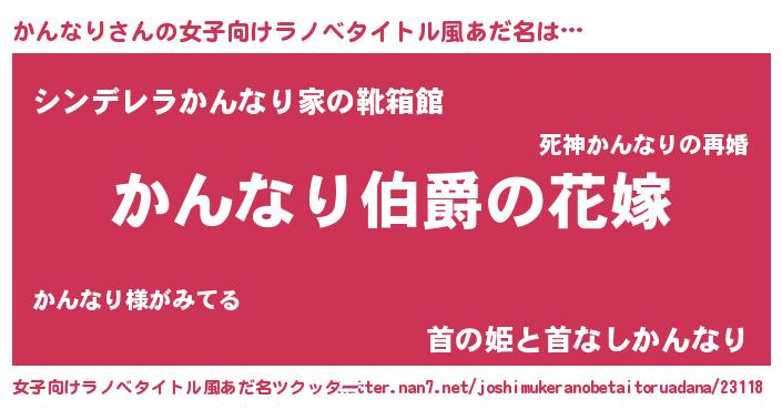 | 男性向けラノベタイトル風あだ名 | 『やはりかんなりの青春ラブコメはまちがっている 』 |