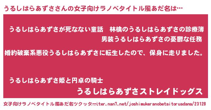 | 胡散臭い通販商品みたいなあだ名 | 『ハリウッド女優が絶賛した100年もののヴィンテージワイン…その名も「うるしはらあずさ」』 |