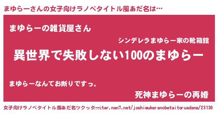 | 男性向けラノベタイトル風あだ名 | 『まゆらーという概念が存在しない退屈な世界 』 |