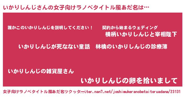 | 意味不明あだ名 | 『住所不定無職いかりしんじ(85歳)』 |