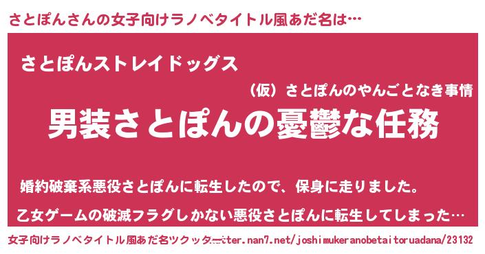| 男性向けラノベタイトル風あだ名 | 『冴えないさとぽんの育てかた』 |