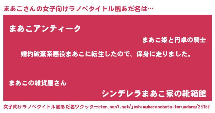 | 男性向けラノベタイトル風あだ名 | 『マアコスレイヤー』『緋弾のマアコ』 |
