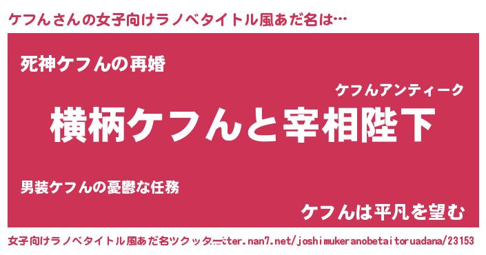 | 男性向けラノベタイトル風あだ名 | 『ケフんに滅ぼされるだけの簡単なお仕事です』 |