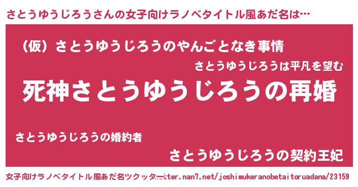 | 男性向けラノベタイトル風あだ名 | 『ノーゲーム・ノーサトウユウジロウ』 |