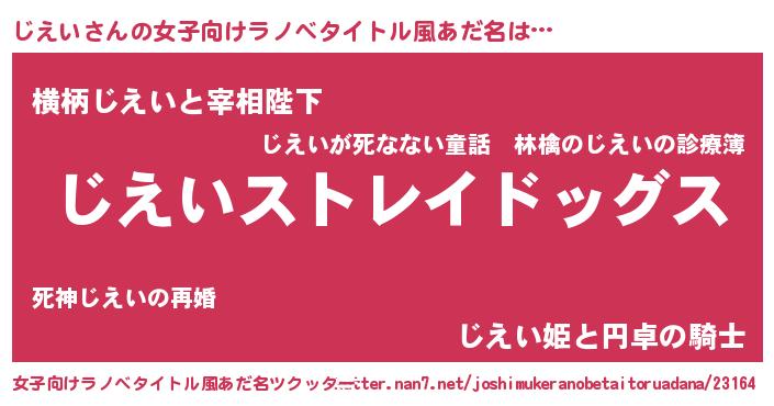 | 男性向けラノベタイトル風あだ名 | 『Re:じえいから始める異世界生活』 |