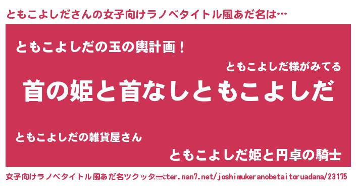 | 胡散臭い通販商品みたいなあだ名 | 『モテモテ間違いなしブレスレット…その名も「ともこよしだ」』 |