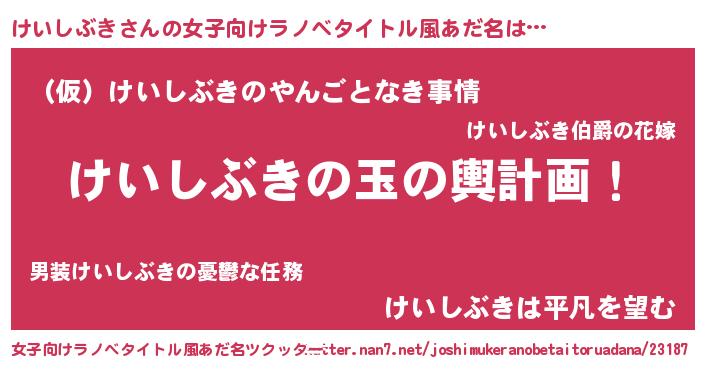 | 胡散臭い通販商品みたいなあだ名 | 『億万長者になれる水晶球…その名も「けいしぶき」』 |