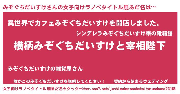 | 男性向けラノベタイトル風あだ名 | 『みぞぐちだいすけに滅ぼされるだけの簡単なお仕事です』 |