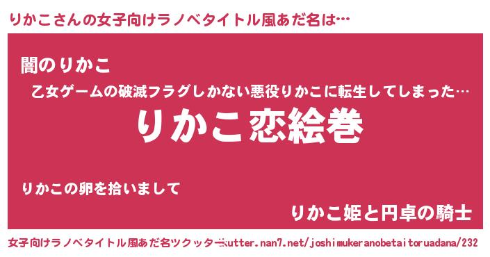 | 男性向けラノベタイトル風あだ名 | 『ノーゲーム・ノーリカコ』 |
