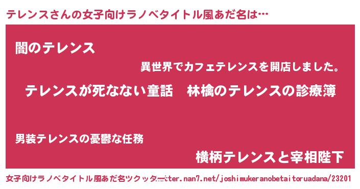 | 意味不明あだ名 | 『住所不定無職テレンス(10歳)』 |