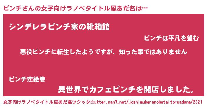 | 男性向けラノベタイトル風あだ名 | 『この素晴らしい世界にピンチを!』 |