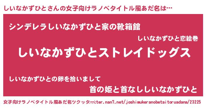 | 男性向けラノベタイトル風あだ名 | 『Re:しいなかずひとから始める異世界生活』 |