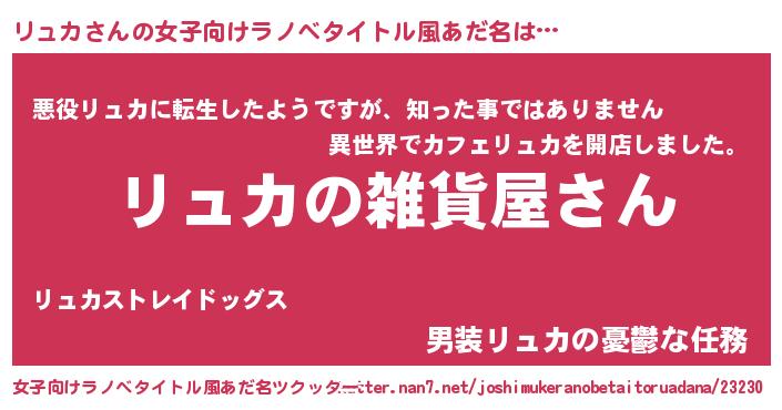 | ファンタジー風あだ名 | 『エターナルリュカー』『ヴァルリューナ』 |