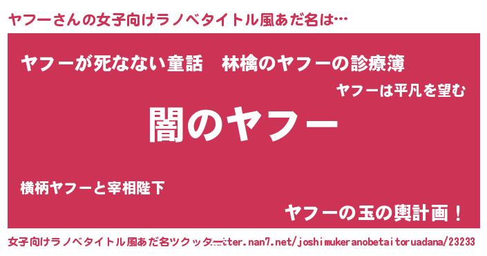| ヘコむあだ名 | 『ヤフっ子』『ヤフー(遠い目)』 |