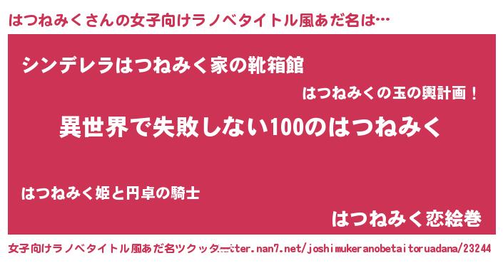| 男性向けラノベタイトル風あだ名 | 『はつねみくという概念が存在しない退屈な世界 』 |