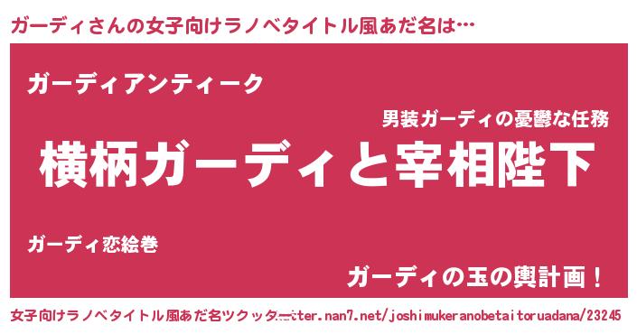 | 胡散臭い通販商品みたいなあだ名 | 『テレビで話題のアガリクス…その名も「ガーディ」』 |