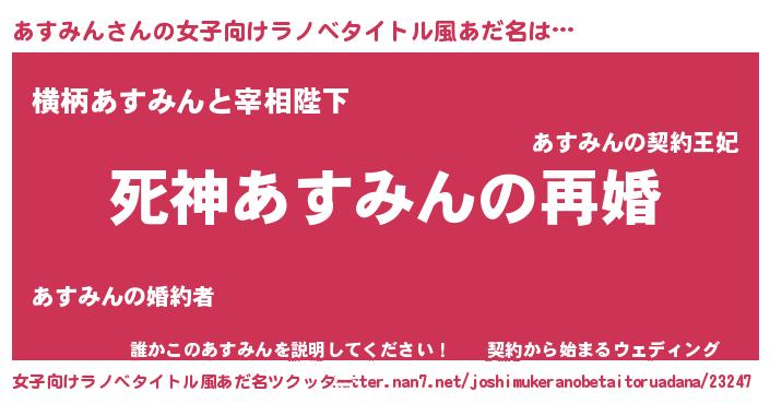 | 男性向けラノベタイトル風あだ名 | 『ノーゲーム・ノーアスミン』 |