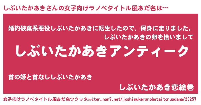 | 意味不明あだ名 | 『自称しぶいたかあき』 |