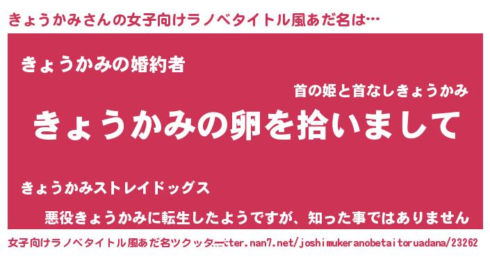 | 男性向けラノベタイトル風あだ名 | 『きょうかみの嫁は女の子じゃないと思った?』 |