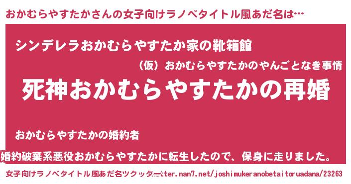 | 男性向けラノベタイトル風あだ名 | 『ノーゲーム・ノーオカムラヤスタカ』 |