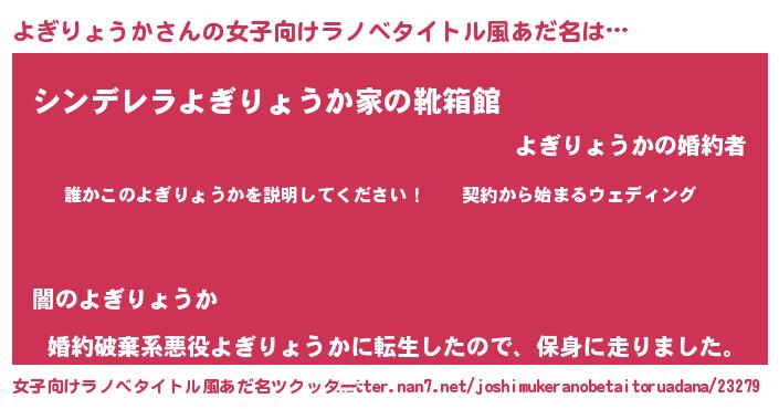 | 男性向けラノベタイトル風あだ名 | 『ヨギリョウカアートオンライン』 |