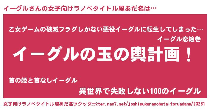 | 胡散臭い通販商品みたいなあだ名 | 『あなたにだけ特別に提供する100年もののヴィンテージワイン…その名も「イーグル」』 |