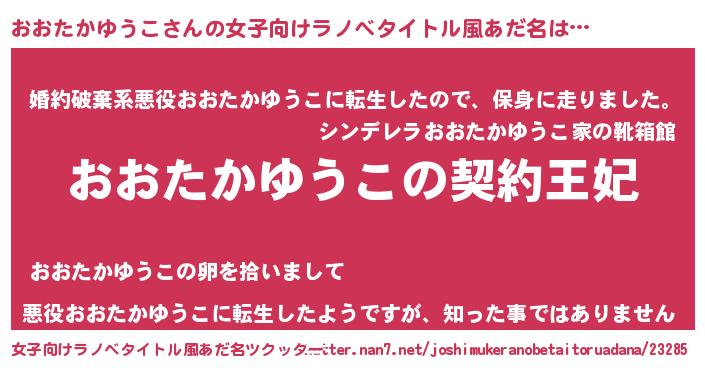 | 男性向けラノベタイトル風あだ名 | 『おおたかゆうこという概念が存在しない退屈な世界 』 |