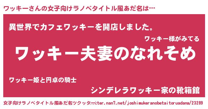 | ファンタジー風あだ名 | 『クインワット』『ワッディッシュ』 |