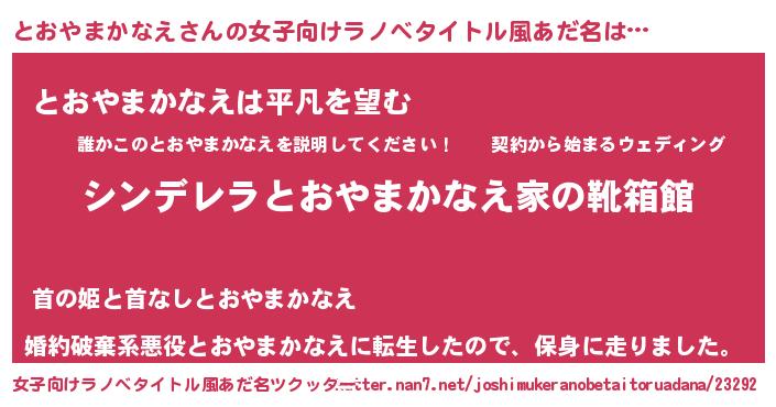 | 胡散臭い通販商品みたいなあだ名 | 『伝統あるネックレス…その名も「とおやまかなえ」』 |