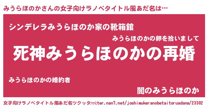 | 男性向けラノベタイトル風あだ名 | 『ノーゲーム・ノーミウラホノカ』 |