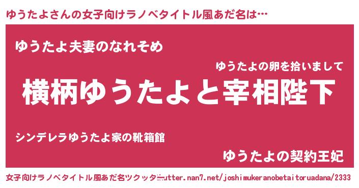 | ヒーロー風カッコイイあだ名 | 『愛の使者ゆうたよ』『ネオユウタヨ』 |
