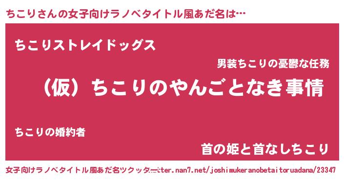 | 胡散臭い通販商品みたいなあだ名 | 『必ず成功するブレスレット…その名も「ちこり」』 |
