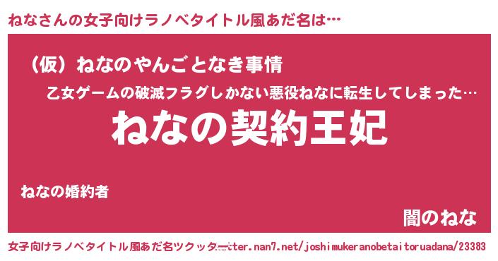 | 胡散臭い通販商品みたいなあだ名 | 『来世でも幸せになれる水素水…その名も「ねな」』 |