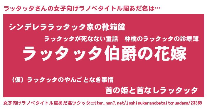 | 胡散臭い通販商品みたいなあだ名 | 『世界が平和になる高級そうな皿…その名も「ラッタッタ」』 |