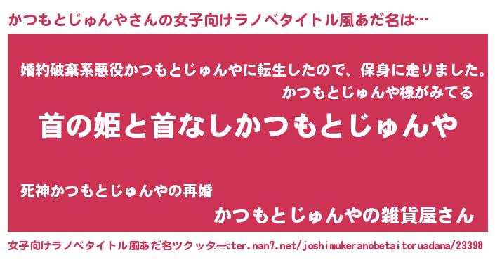 | 男性向けラノベタイトル風あだ名 | 『はたらくかつもとじゅんやさま!』 |