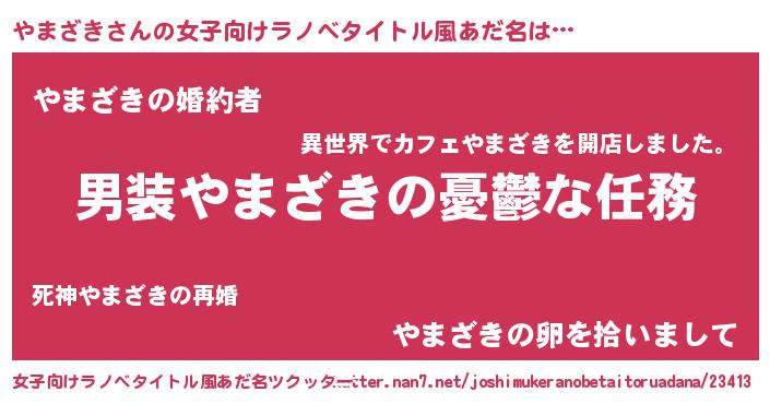 | 男性向けラノベタイトル風あだ名 | 『うちのやまざきが世界を掌握している!』 |