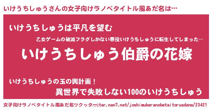 | ファンタジー風あだ名 | 『エターナルイケウチシュウー』 |