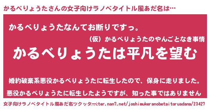 | 男性向けラノベタイトル風あだ名 | 『ダンジョンにかるべりょうたを求めるのは間違っているだろうか』 |