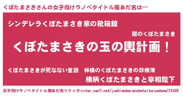 | 男性向けラノベタイトル風あだ名 | 『転生したらくぼたまさきだった件』 |
