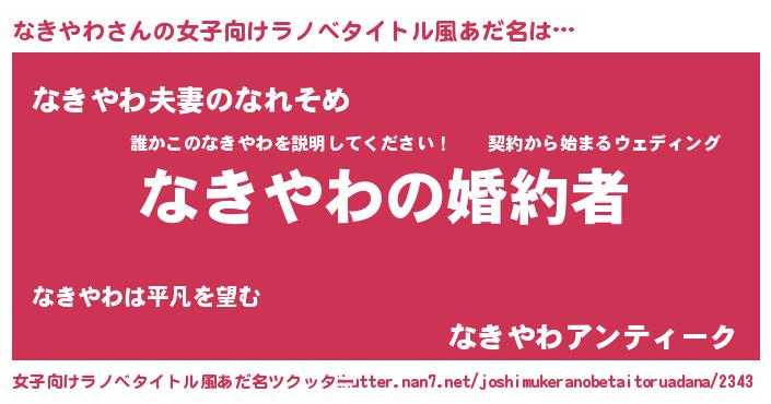 | 胡散臭い通販商品みたいなあだ名 | 『運命の人と巡り会える高級そうな絵画…その名も「なきやわ」』 |