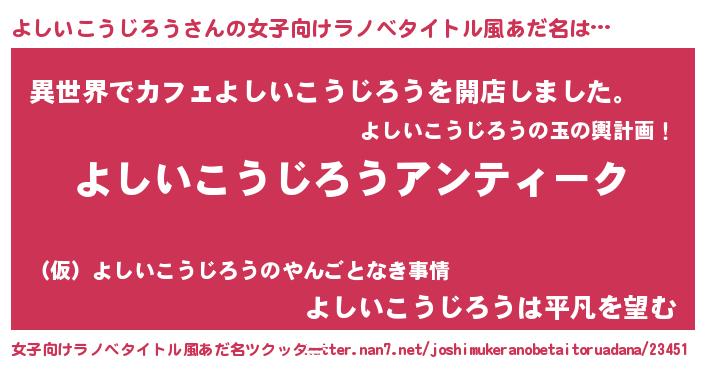 | 意味不明あだ名 | 『自称よしいこうじろう』 |