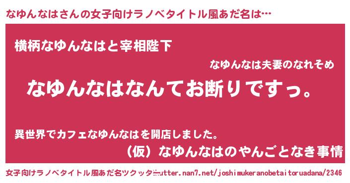 | 男性向けラノベタイトル風あだ名 | 『魔法科高校のなゆんなは』 |