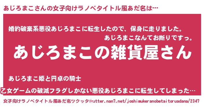 | ファンタジー風あだ名 | 『エターナルアジロマコー』『ゼアジトゥ』 |