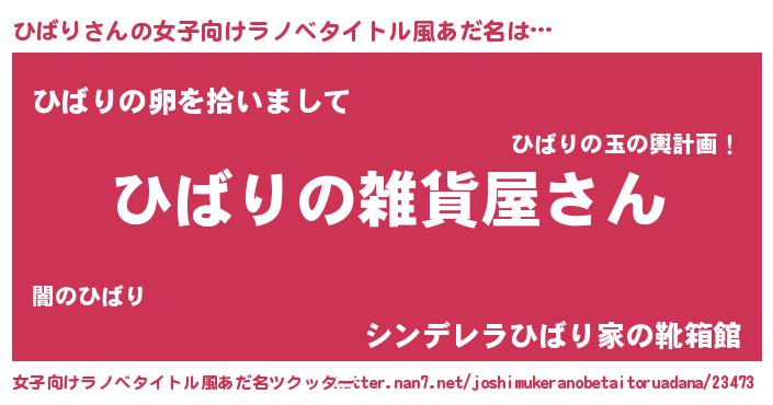 | 男性向けラノベタイトル風あだ名 | 『やはりひばりの青春ラブコメはまちがっている 』 |