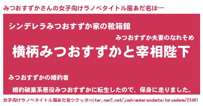 | 男性向けラノベタイトル風あだ名 | 『みつおすずかに滅ぼされるだけの簡単なお仕事です』 |