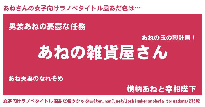 | 男性向けラノベタイトル風あだ名 | 『やはりあねの青春ラブコメはまちがっている 』 |