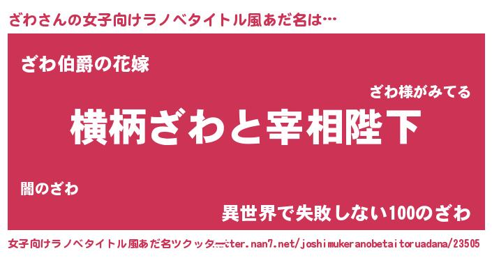 | 男性向けラノベタイトル風あだ名 | 『ざわに滅ぼされるだけの簡単なお仕事です』 |