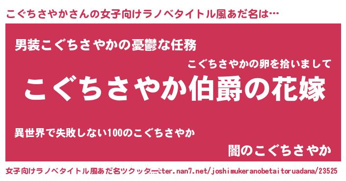 | 欧米人風あだ名 | 『こぐちさやかクリステル』 |